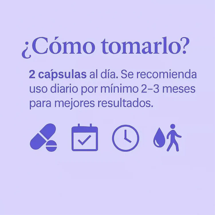 Para obtener los mejores resultados, se recomienda tomar 2 cápsulas diarias con agua, preferiblemente junto con una comida ligera.